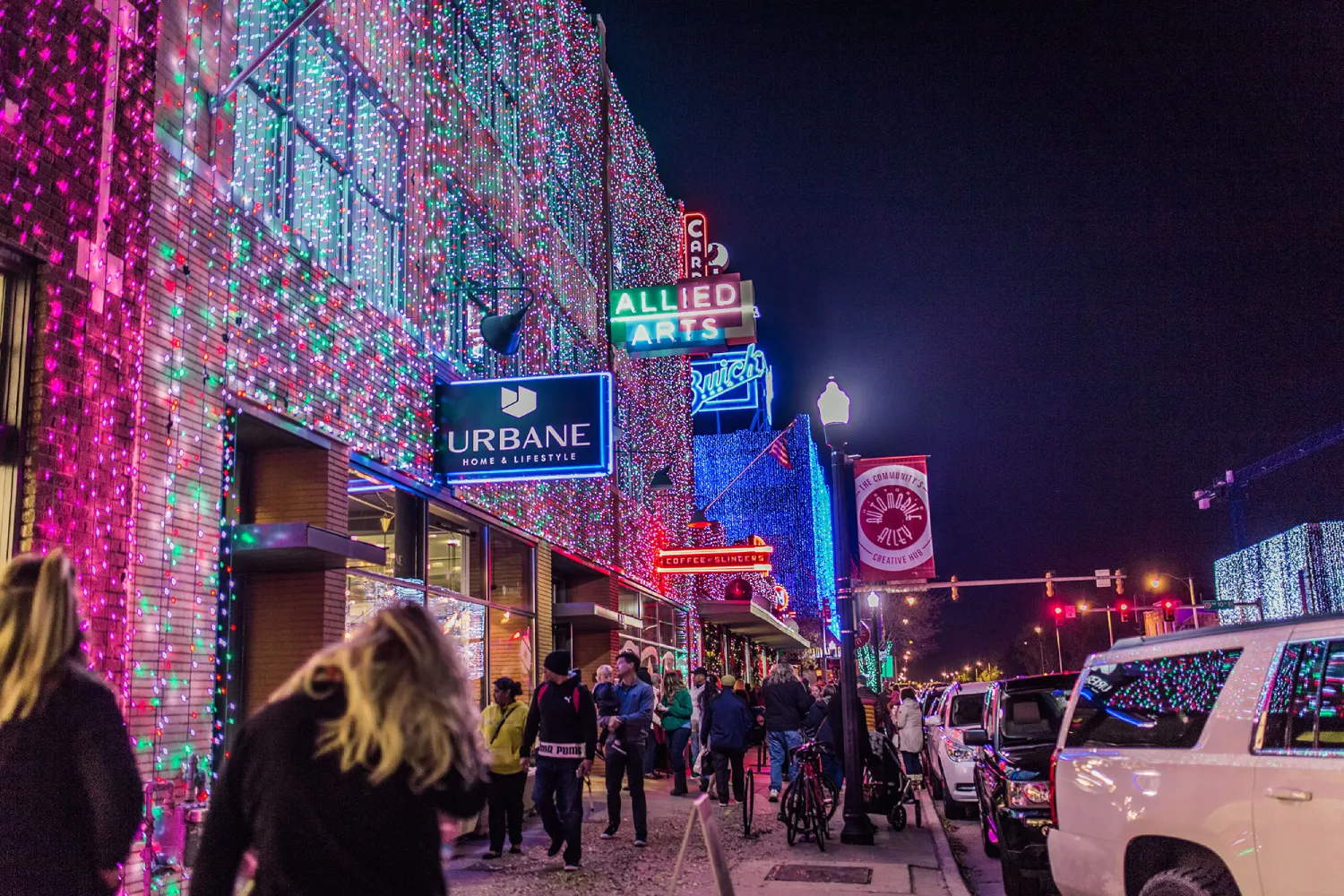 - A dazzling display of holiday lights sure to put the whole family in the holiday spirit lines Broadway Avenue through Automobile Alley near downtown Oklahoma City. Stop in during their Lights on Broadway events on Saturdays, Nov. 29-Dec. 13 from 4-7 p.m. and enjoy lots of family-friendly fun.