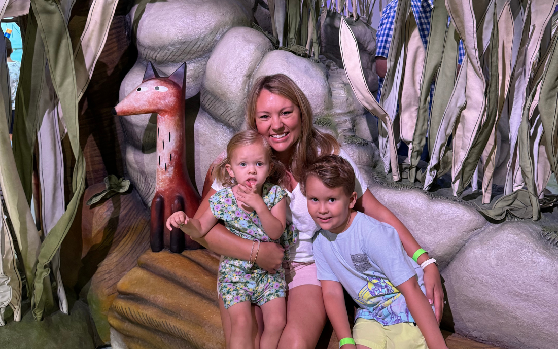 Hands down, the first stop on your trip needs to be The Rabbit Hole. This experience is actually the most magical place on earth! We went down a literal rabbit hole into a new world of amazing set designs from well-loved books. My youngest has the whole Goodnight Moon book memorized and was blown away by visiting the “great green room” from the book (we all were!). Other book displays included the entirety of Curious George, Good Dog Carl, Where the Sidewalk Ends, Blueberries for Sal, I am Bunny and so much more.
