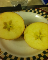 Did you know when you cut an apple through the wider part of the apple it has a hidden surprise inside. When the apple is cut, there is a star hidden inside! My 5 year old came home from school and told me to open an apple for the surprise. I thought it was really neat.
