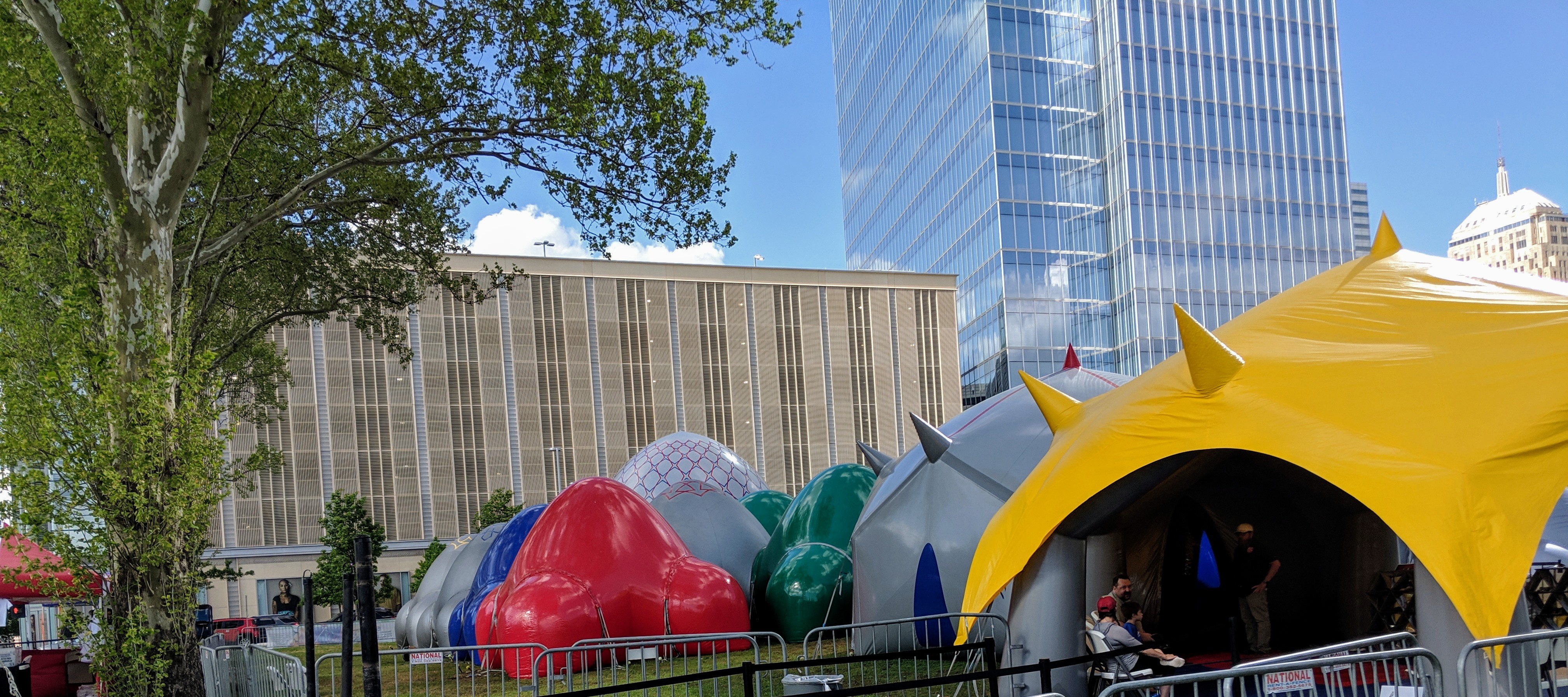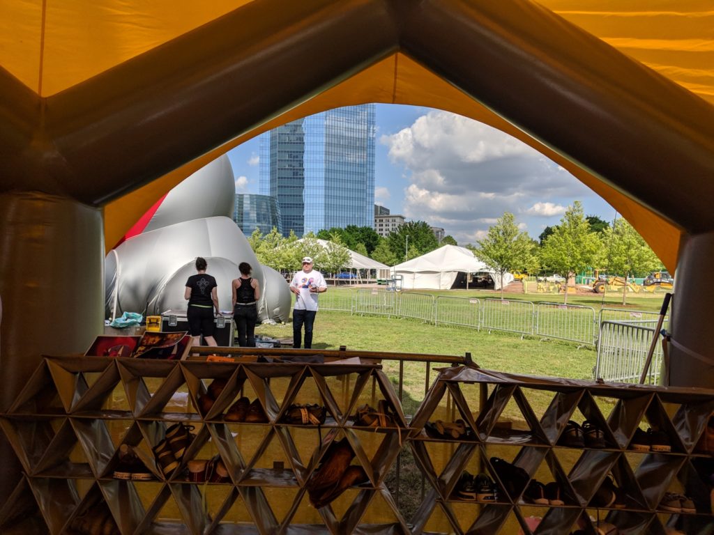 RexFest's colorful structures that look like inflated tents are visible in front of the downtown skyline; an easy landmark to reach them is that they're in front of the Devon Tower. They form the Albesila Luminarium, an exhibit created by U.K.-based Architects of Air, which has traveled the globe with 22 of these installations. Visiting is like stepping into a kaleidoscope, as light reflects off its colorful walls. The same kind of cool, calm feeling that stain glass inspires seems to live in the luminarium.