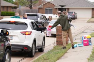 As we turned the corner to their street, Joey was in her front yard surprised to see her family and friends honking horns and yelling “Happy Birthday” out the windows. Neighbors gathered at their doors – also cheering for Joey. As we drove down her street with our hazard lights on, we dropped off presents with her dad at the curb as we danced, waved and yelled from afar.