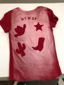 Decorate a t-shirt using bleach and stencils with images of your choosing, perhaps stars and stripes for the Fourth of July. The folks at the National Cowboy & Western Heritage Museum are kind of partial to Western imagery!