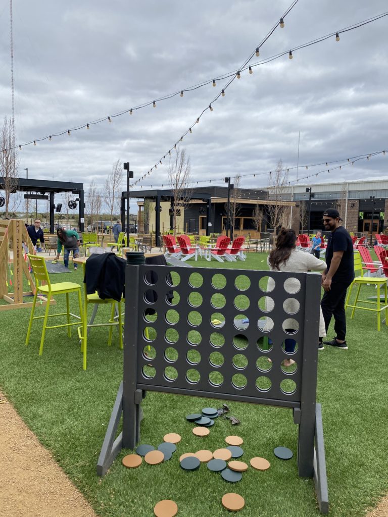If pickleball or the food doesn’t interest you, there are plenty of indoor games and lawn activities to keep a whole party entertained including bocce ball courts, shuffleboard courts and a giant checkers game. Not to mention there are two alcoholic bars serving a variety of drinks including craft beer. The place is modern, sprawling with yard games and activities with plenty of seating indoors and out.
