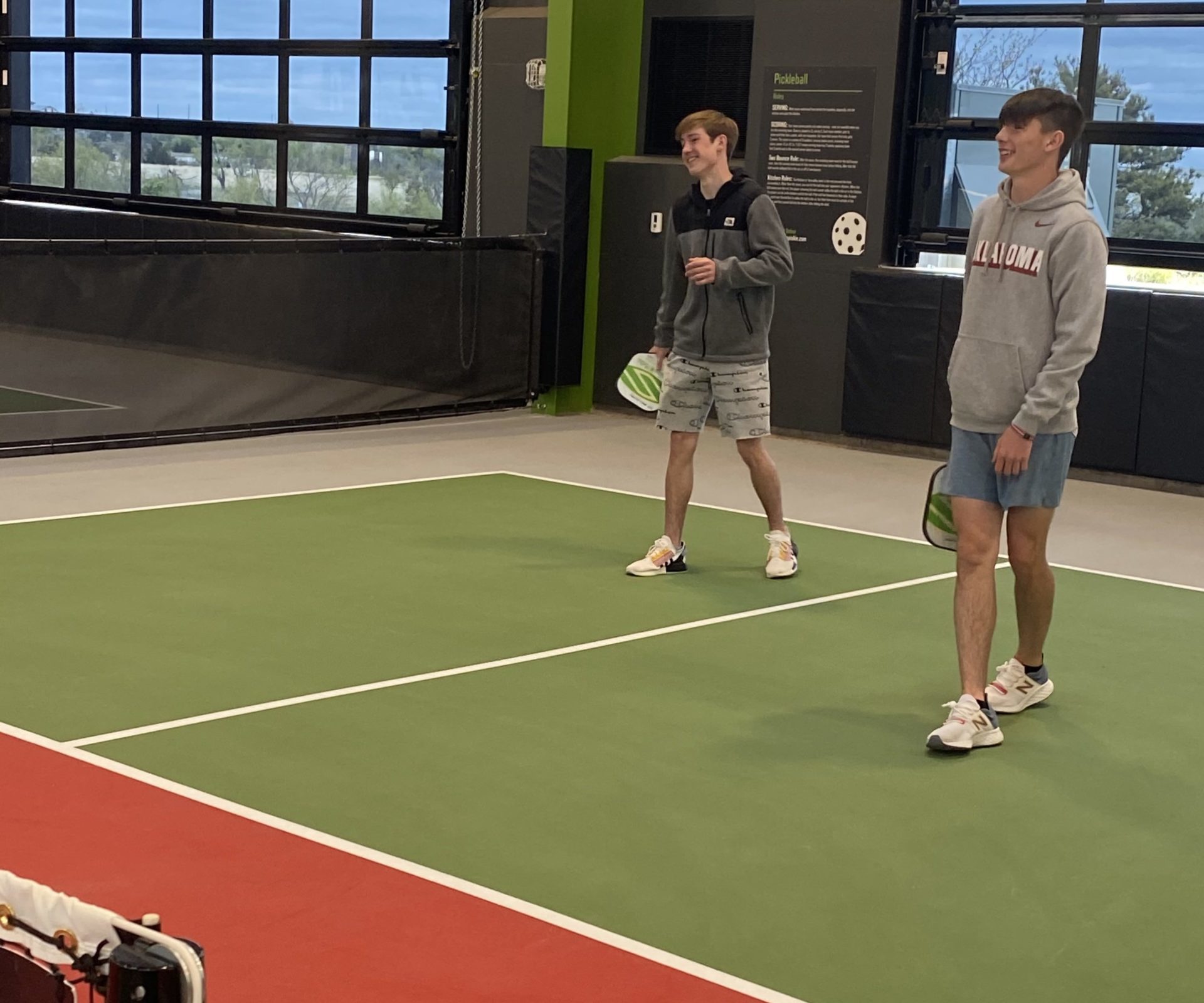 Afterward, we headed to the indoor pickleball courts. In total, there are six indoor and four outdoor courts. Two of the outdoor courts are covered which I thought was a nice touch. We rented out paddleboards and balls, and then took to the court. The boys had a lot of fun, and Kobe, my middle son, caught on really fast. The place was very busy, so if you go, be sure to pre-book ahead of time.