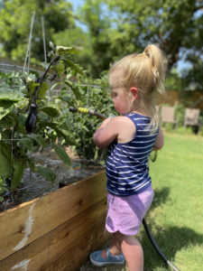 To collect kitchen scraps, we started with a container with an attached lid on the kitchen counter. We bought small compostable bags to avoid the bucket getting grimy and adding another chore – washing it – to our lives. Although our kiddo loved to help carry the scrap bags outside, I learned a few lessons that first summer: