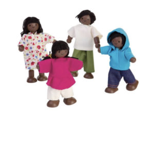 Revamp your children’s toy box to represent the diversity of the world around them. Doll families from PlanToys, available at Plenty Mercantile, are available in a variety of races. We have all four families in the Play Cafe Play Zone and children loved playing with them. Be ready to answer–and ask–questions about differences between dolls (skin color, hair color, etc.) while also considering similarities (i.e. “This doll family is a beautiful dark brown and this one is creamy light brown, but look how all of the doll families take care of each other!”) Teaching children to celebrate the differences while appreciating the commonalities in their doll families is great practice for how to frame racial differences among classmates, neighbors and other acquaintances in real life.
