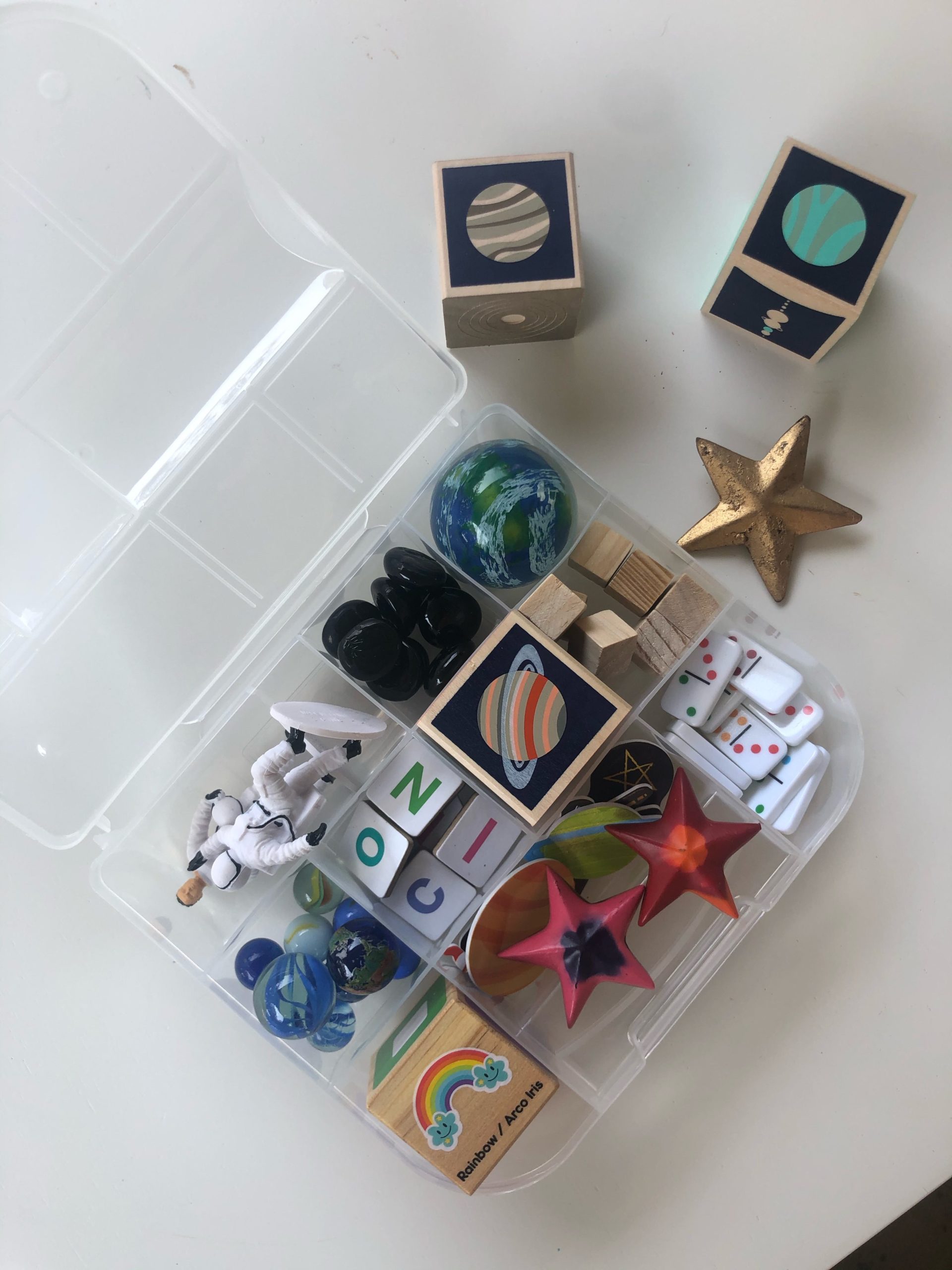 Each themed box comes with a variety of high-quality tactile objects, like letter tiles, figurines, objects from nature, flash cards, dominoes and dice, to promote interactive learning of numbers, letters, shapes and language in either French or Spanish. A QR code can be scanned to reveal a lesson plan that focuses on French or Spanish vocabulary, new phrases and fun games. Box themes include space, construction, dinosaurs and farm fun, as well as holidays, and rather than just a focus on memorizing pertinent words, the learning is immersive to include conversation, sentence structure and more.