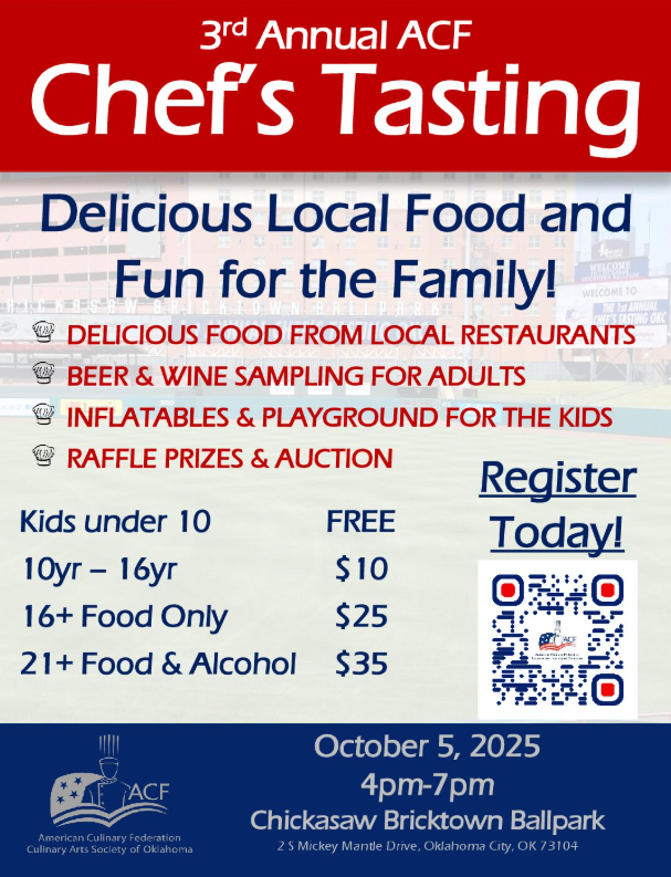 Hosted by The Culinary Arts Society of Oklahoma, this event features local restaurants, breweries and chefs serving food, beer and wine, plus raffle prizes, games and more.