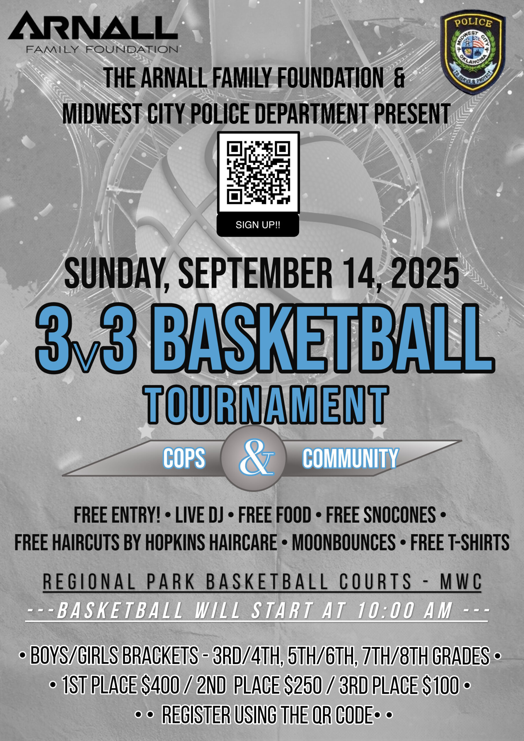 Features a 3v3 basketball tournament for kids in grades 3rd through 8th, plus a live DJ, free food, snow cones, haircuts, inflatables and more.