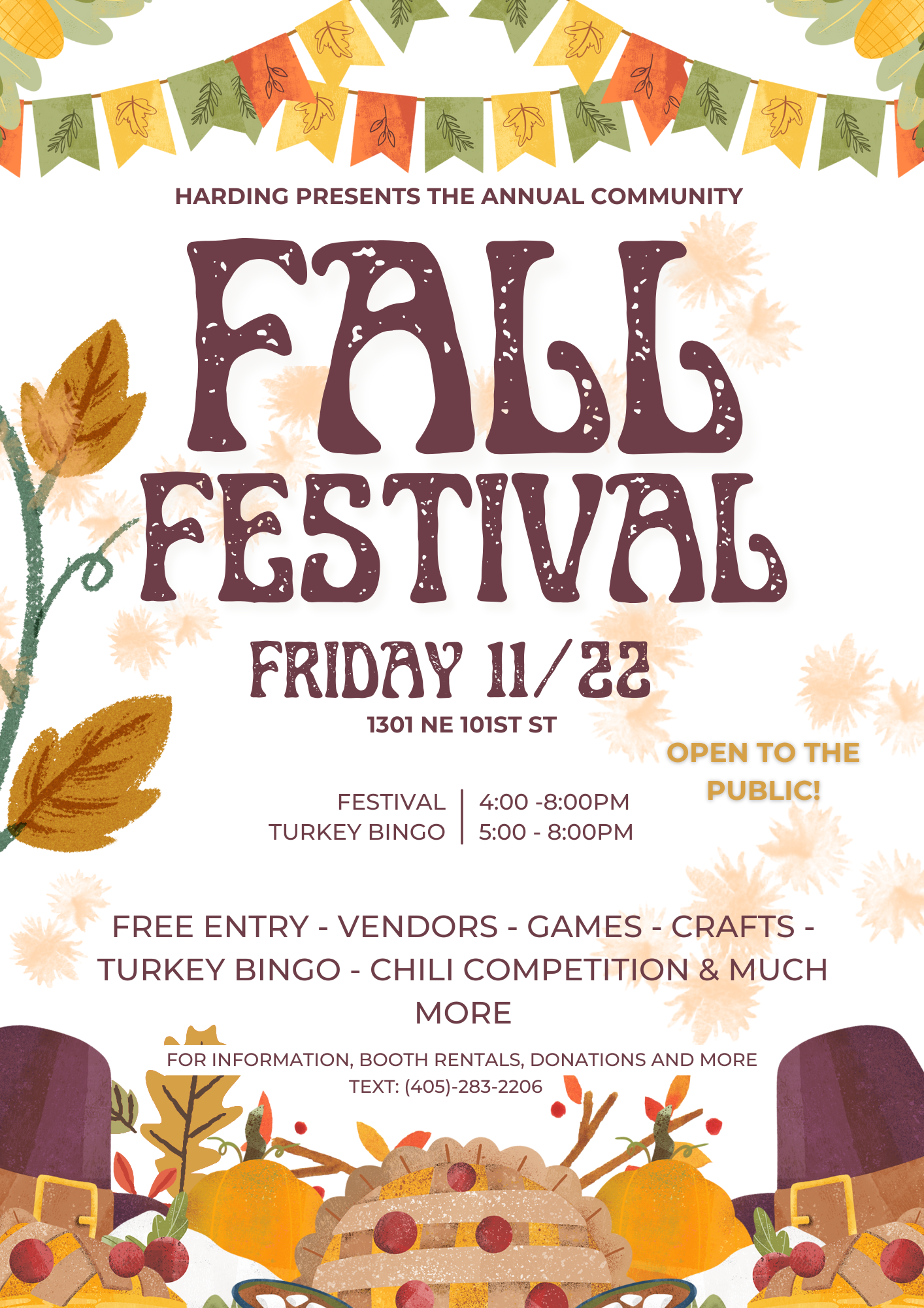 A free family event featuring a farmer’s market, games, crafts, turkey bingo, a chili competition, and much more. This is a yearly event hosted by students to encourage service; all are welcome!