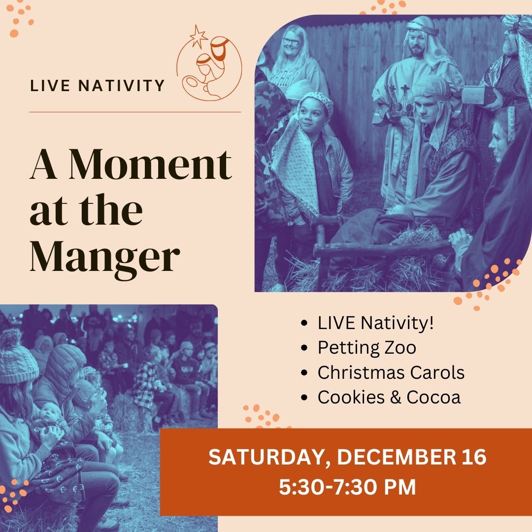 Features a live nativity and narration of the birth of Jesus, plus Christmas carols, a petting zoo, cookies & cocoa, and more.