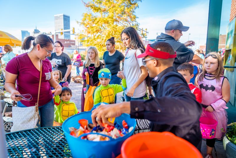 Features trick-or-treating at over 50 candy stops, roaming characters, balloon artists, performers and more.