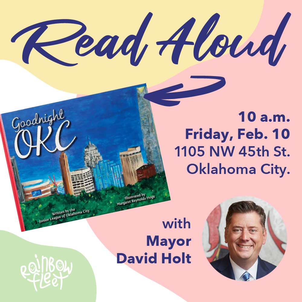 Mayor David Holt will read his book "Goodnight, OKC" at this Friday’s Read Aloud. This event is open to the public and appropriate for children for ages 5 and under.