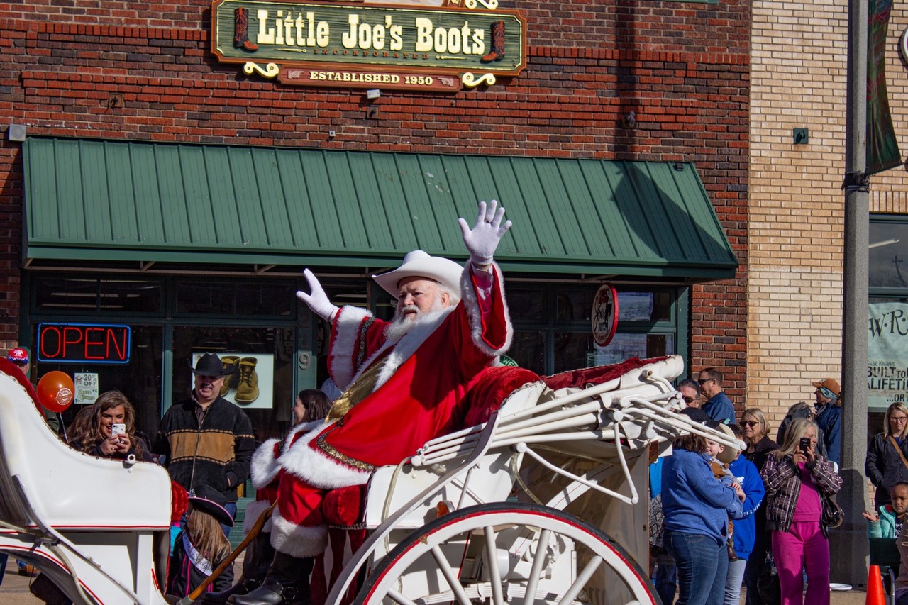 Features a parade, Christmas music and Cowboy Santa. The festivities kick off at 10 a.m. with the Slash O Ranch Longhorns leading the parade. Also included in the parade are equestrian groups, marching bands, antique cars, community groups, law enforcement, pageant royalty and Cowboy Santa.