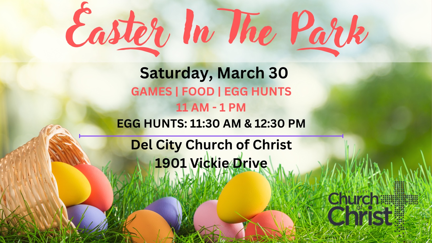 Feature an Easter egg hunt, games and food.