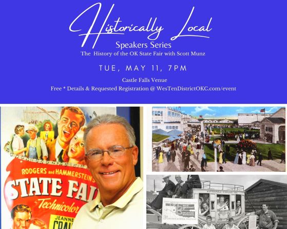 Scott Munz, Oklahoma State Fair vice president, will present an evening on The History of the Oklahoma State Fair. The presentation will cover the history of the Oklahoma State Fair from its beginning in 1889 just five months after the Land Run to present day.