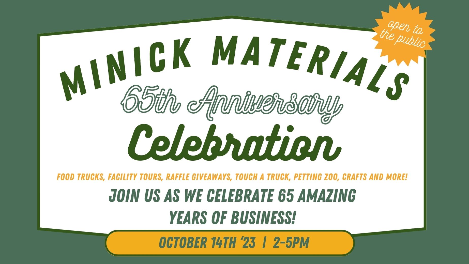FREE Minick Materials 65th Anniversary Celebration