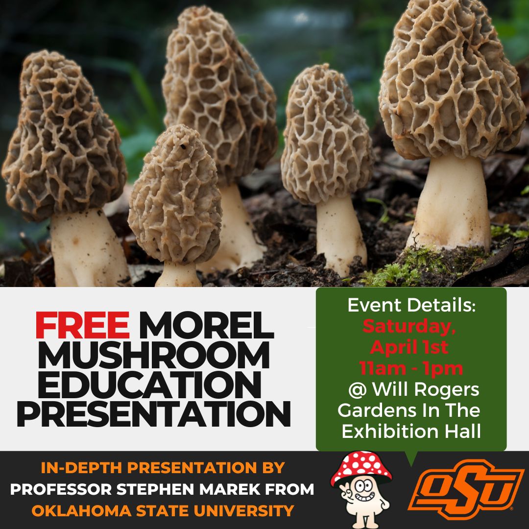 Features a special presentation by associate professor Stephen Marek from Oklahoma State University about the life cycle of morel mushrooms. The group will discuss important topics related to morel mushroom foraging such as deadly look-alikes, temperature, rain patterns, and eco-regions, plus provide tips on how to get started.