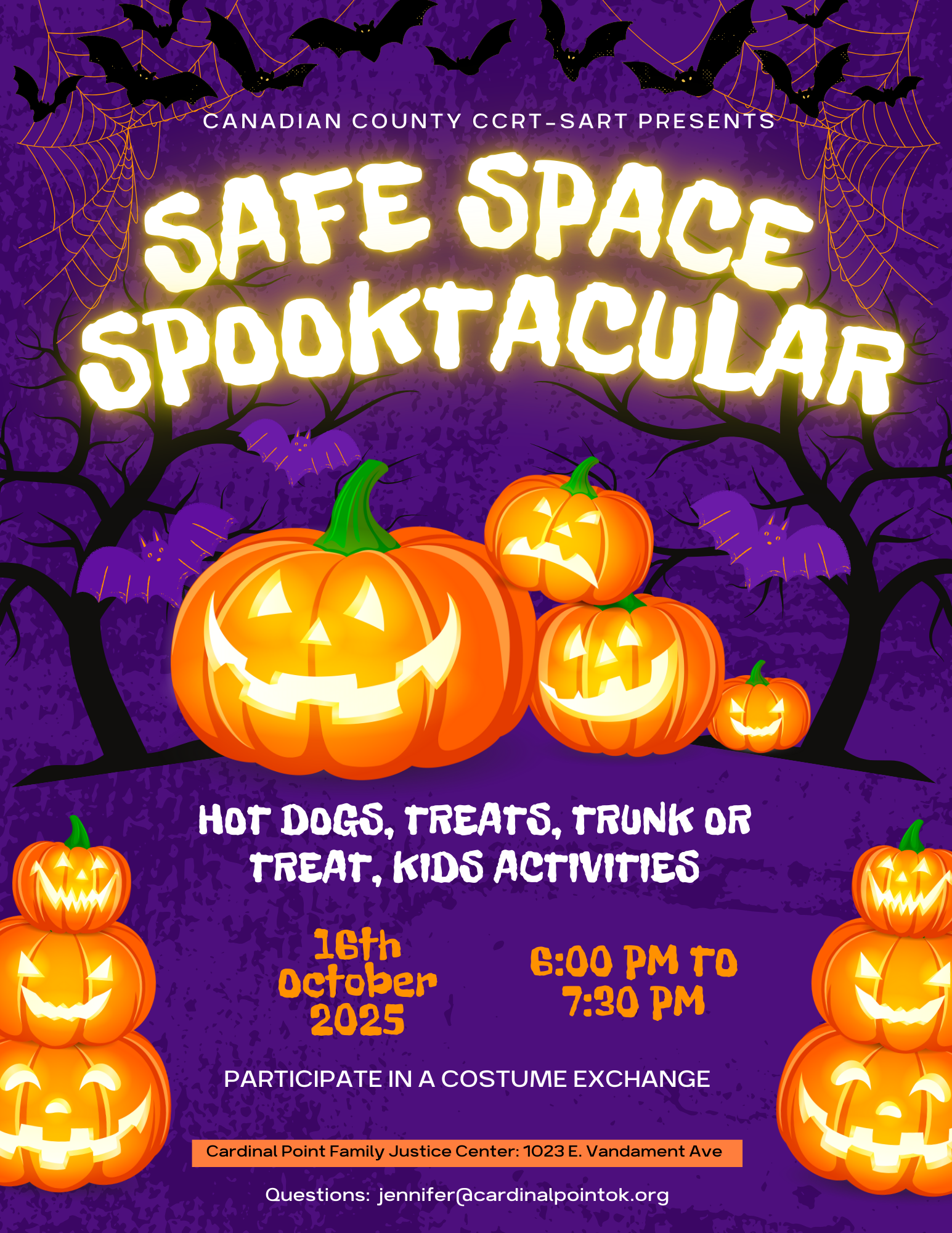 Features a trunk or treat with hot dogs and activities for kids.