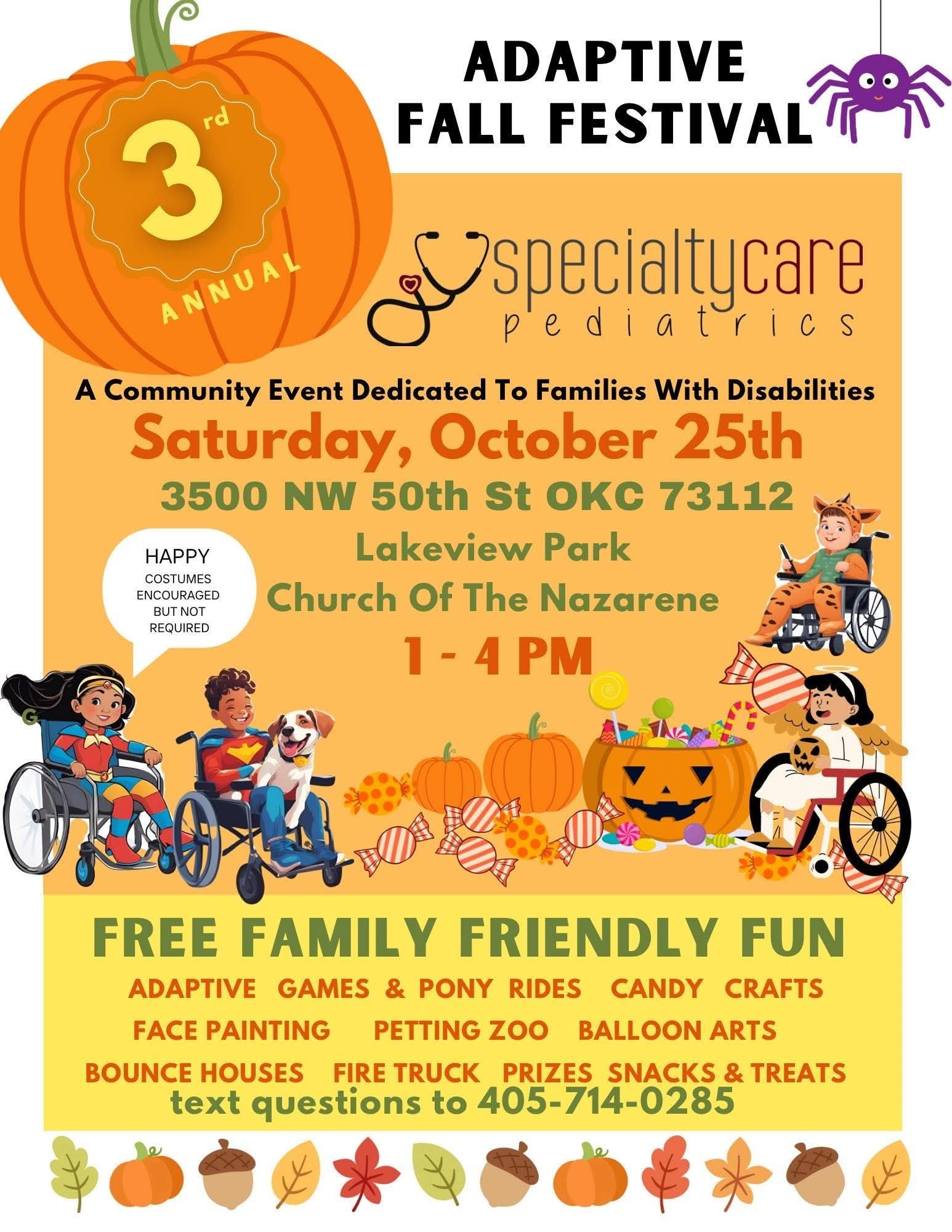 Features adaptive pony rides, food trucks, arts & crafts, petting zoo, adaptive games and more.