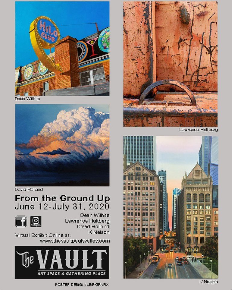 Features virtual exhibit highlighting four Oklahoma artists:  David Holland, Lawrence Hultberg, KNelson, and Dean Wilhite.  This online exhibit is a creative solution to allow art enthusiasts can break through the restrictions of time and space imposed by to the COVID-19 health crisis.