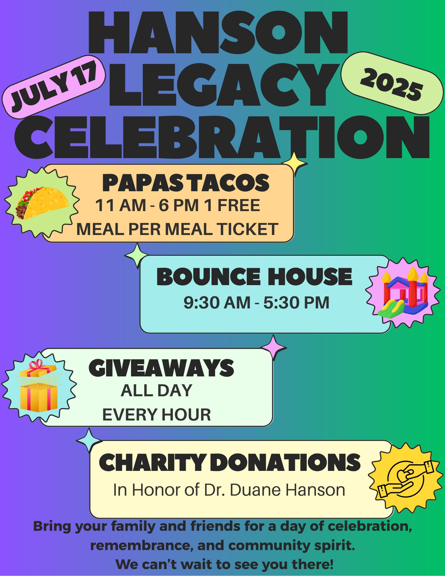 The event celebrates the life and legacy of the clinic's founder, Dr. Duane Hanson. Dr. Duane Hanson began this practice in 1975 and sadly passed away in July 2024. Proceeds benefit Ambucs and Trail Life Troop 339.