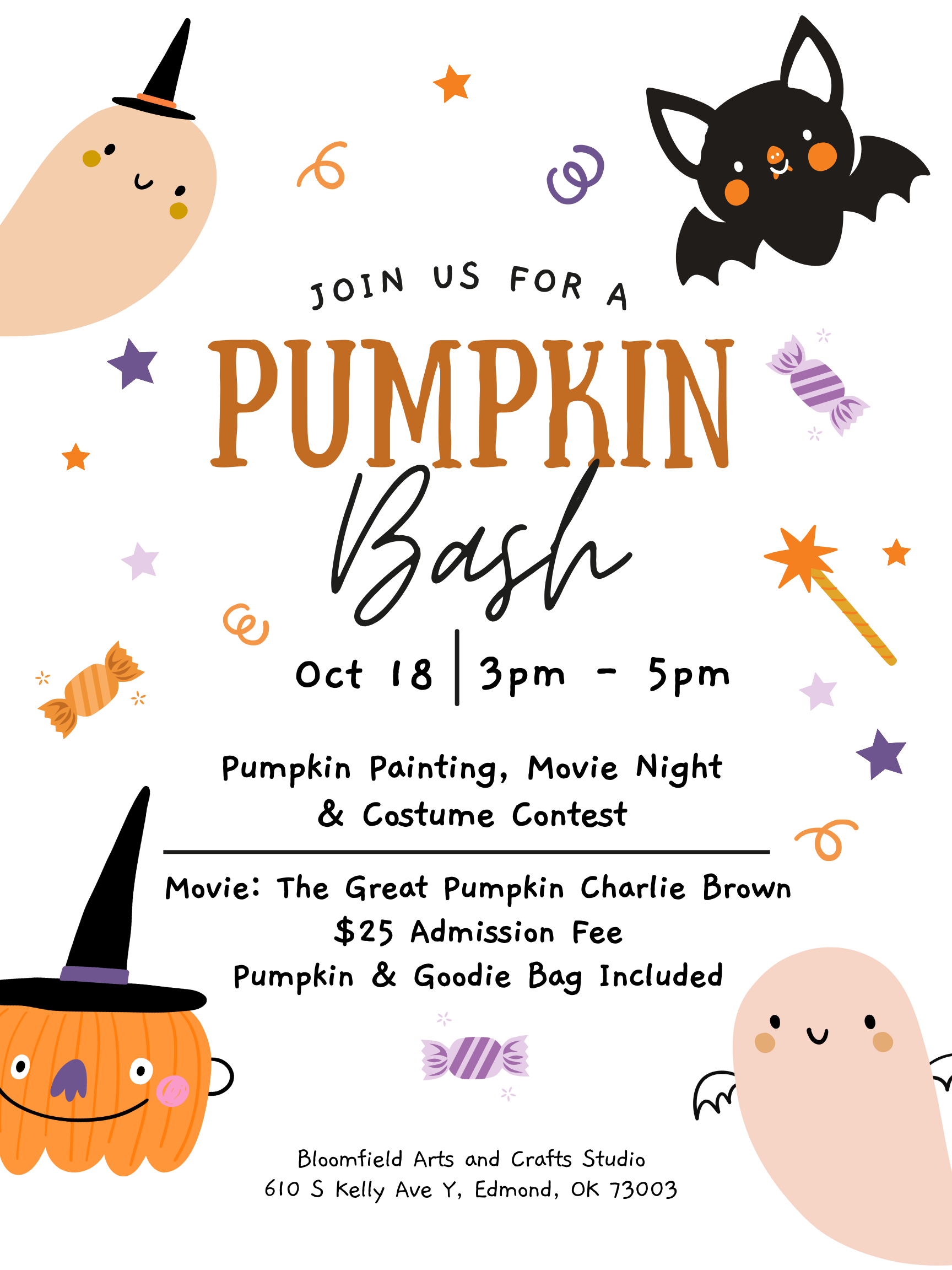 Features pumpkin painting, a costume contest and a screening of It’s the Great Pumpkin, Charlie Brown.