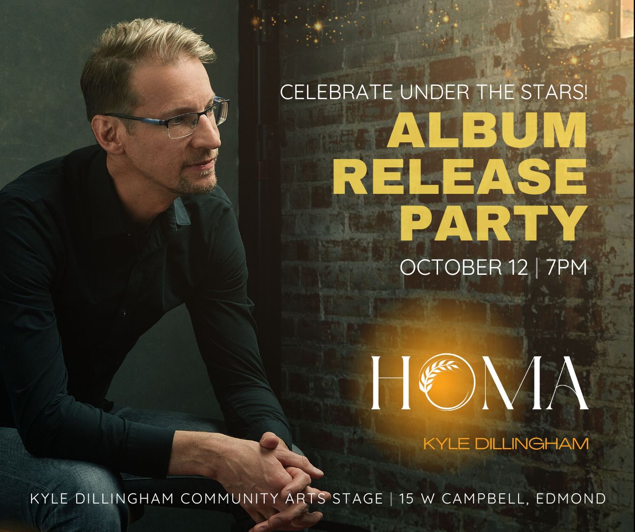 Celebrate Kyle Dillingham's long-awaited new album, "Homa", under the stars at the new Kyle Dillingham Community Arts Stage in Downtown Edmond (behind Silver Leaf Gems).