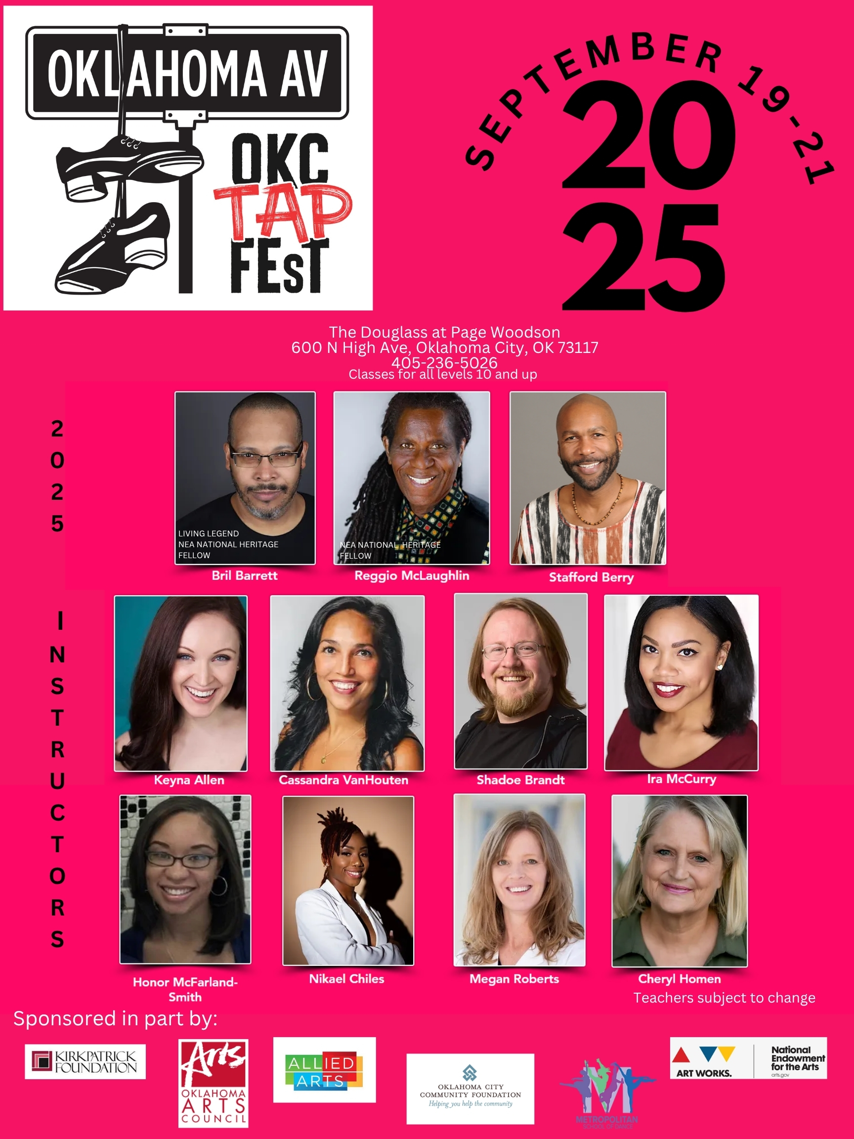 The OKC Tap Dance Festival is a three-day event offering training in dance workshops for students ages 10 & up by top artists. Classes are offered primarily in tap dance, however, additional dance workshops during the festival include African dance, hip-hop, modern and yoga.