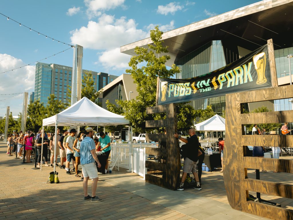 Features an outdoor brewery tasting event with a variety of beers from local breweries plus live music, food trucks and games.
