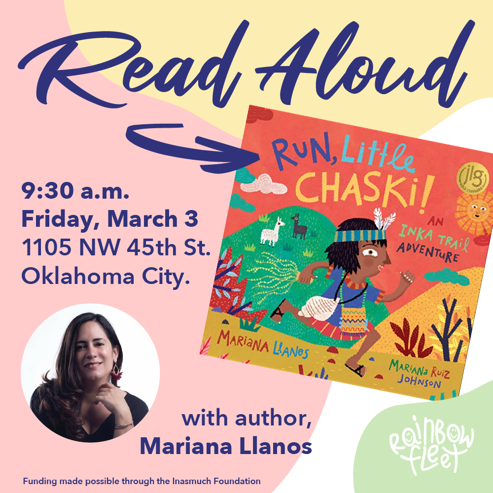 Llanos will be reading her Oklahoma Book Award winning picture book, “Run, Little Chaski!" The book shares cultural themes paired with the virtue of perseverance through the story of an indigenous runner delivering a message on the Incan Trail.