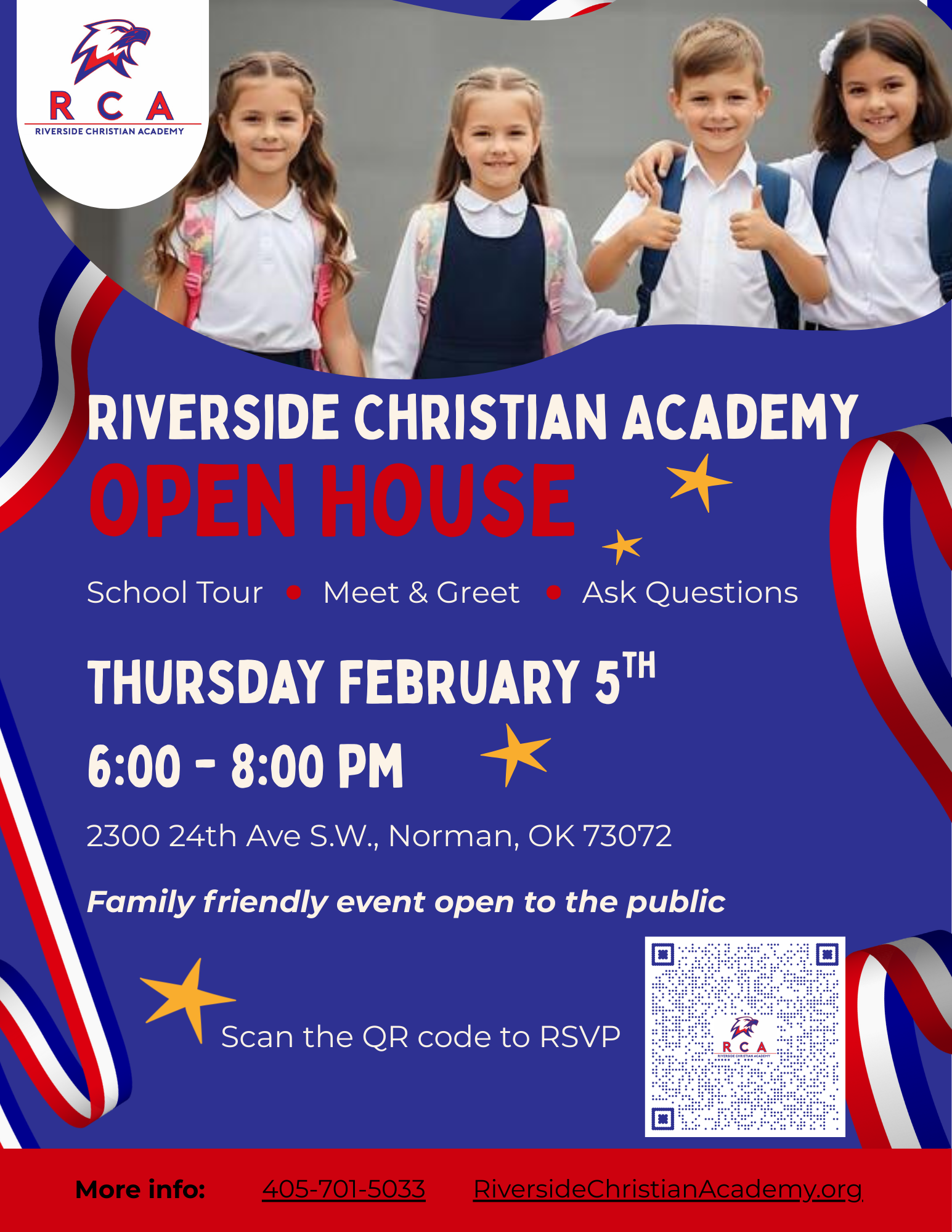 Visit Riverside Christian Academy's Open House on Thursday, February 5th. You will tour the school, meet teachers and be able to ask questions about your child's future education.