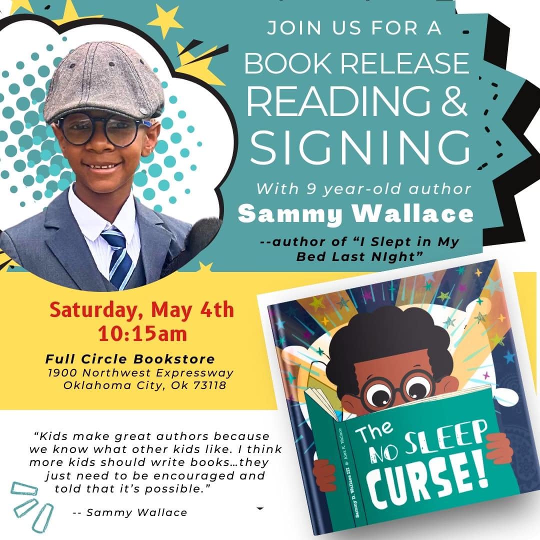 Features a book release, reading and signing event with 9 year-old author, Sammy Wallace, at Full Circle Bookstore. The free-to-attend event is the release of his second book, "The No Sleep Curse", a follow-up to his debut book, “I Slept in My Bed Last Night”.