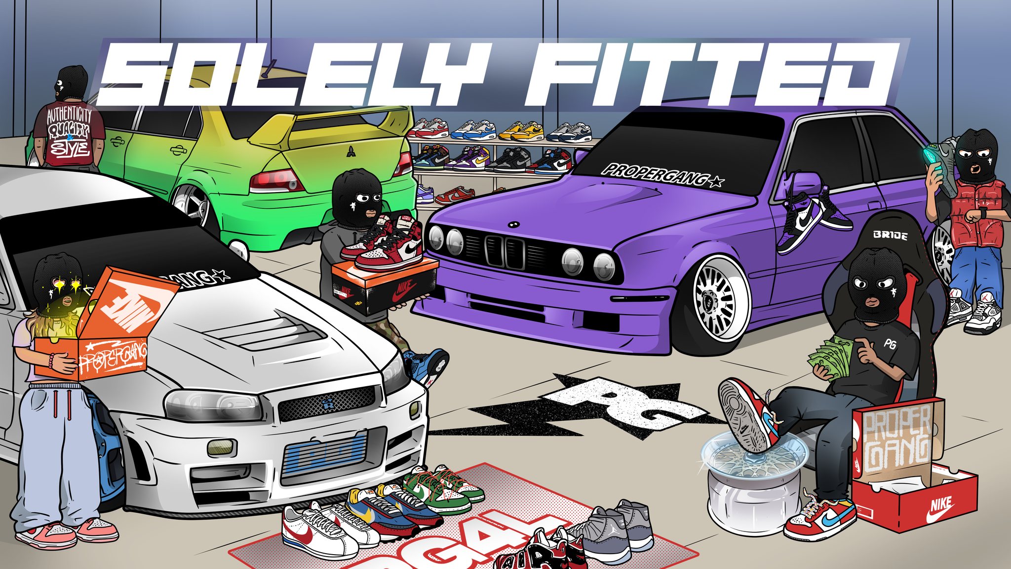 Features an indoor automotive and sneaker event. Vehicles and sneakers share close similarities. Enthusiasts share a passion for authenticity, quality, and style.