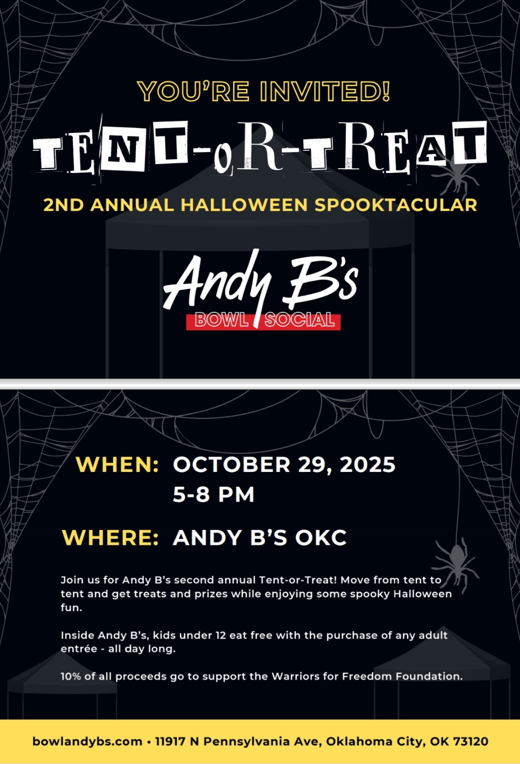 Move from tent to tent and get treats and prizes while enjoying some spooky Halloween fun. Inside Andy B's, kids under 12 eat free with the purchase of any adult entrée - all day long!
