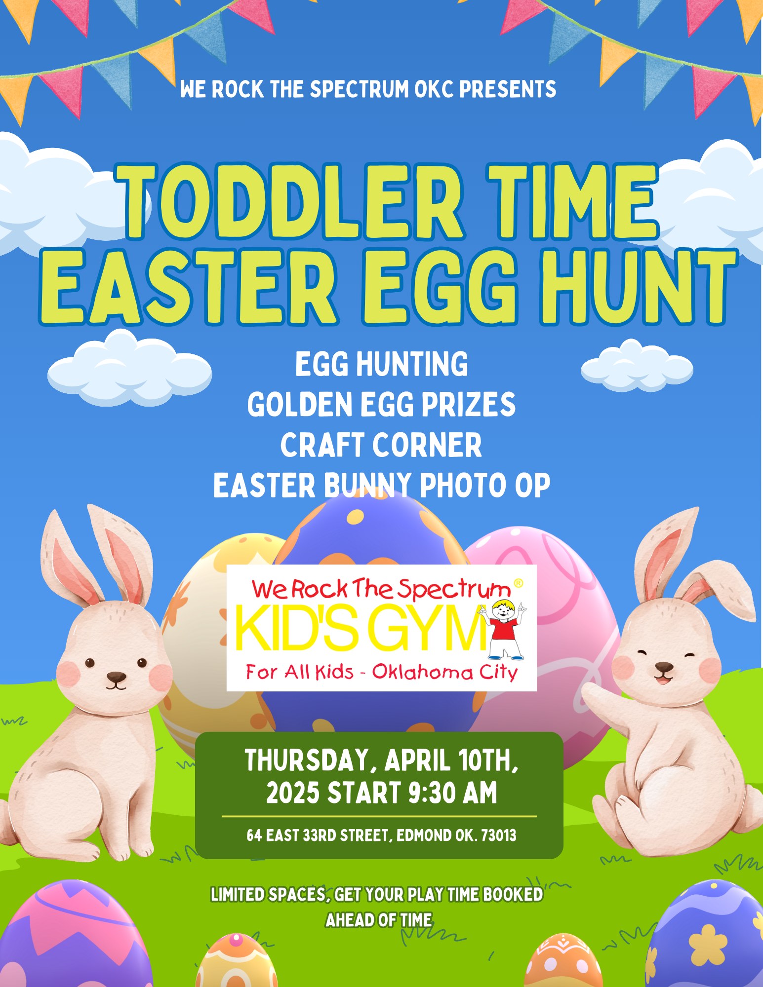 Features a visit from the Easter bunny, an egg hunt, prizes, crafts and play time.