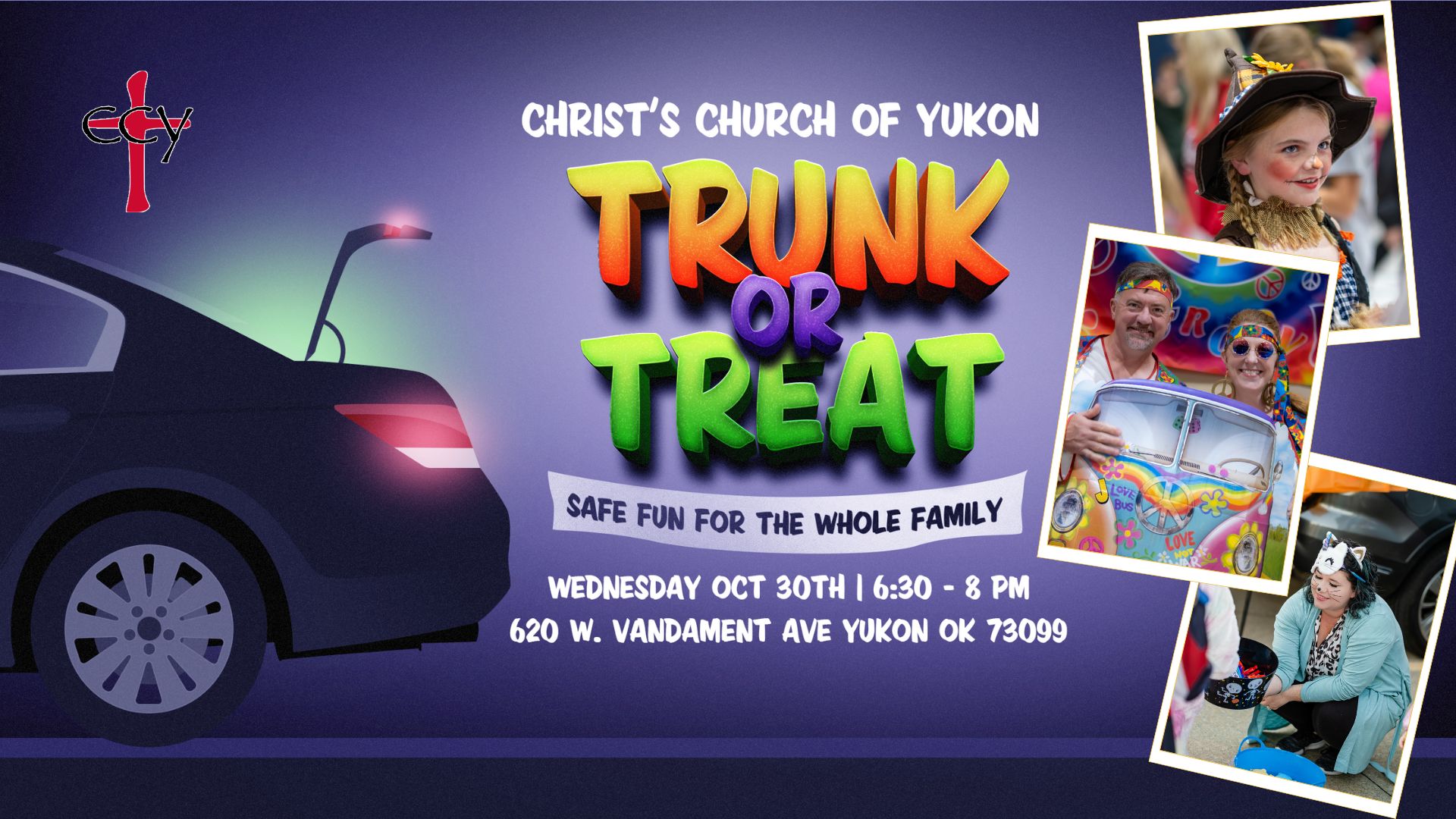 Features creatively decorated trunks filled with treats, festive games, and more. This community event welcomes kids of all ages and costumes are encouraged.