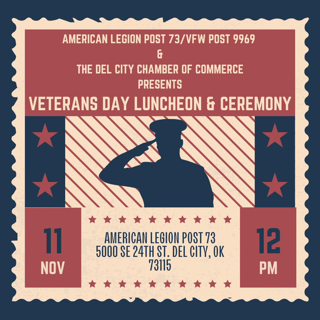 Features a hotdog lunch starting at noon, following by a ceremony at 1 p.m. The ceremony will include a memorial dedication, a reading of names from Del City who gave the ultimate sacrifice, a 21-gun salute and playing of taps.