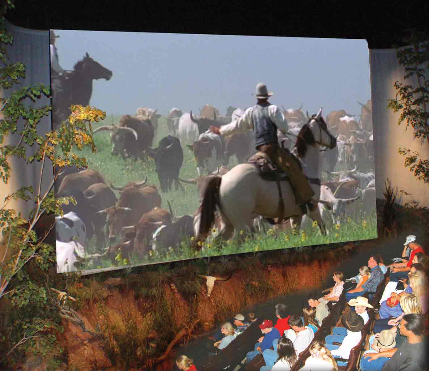 The day we visited was a typical hot and muggy Oklahoma summer day. The coolness of the Heritage Center was a welcome relief. Leah Mulkey, the museum’s Education Coordinator/Office Manager, was kind enough to give me a personal tour. The multi-sensory Chisholm Trail Experience Theatre, where visitors see, hear, feel and smell the trail-drive adventure (rain and all), added to my relief from the heat. What an illustrative and informative way to learn about life on the cattle drive trail.