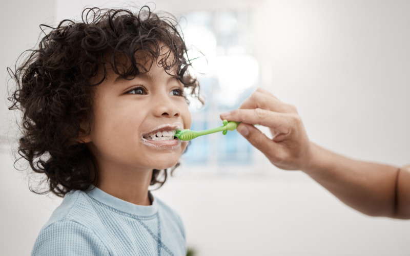 As soon as your child’s first tooth breaks through the gums, begin brushing their teeth with a baby toothbrush or a warm washcloth. Brushing your baby’s teeth twice a day will prevent cavities and ensure your baby has the healthiest smile. Use of a pea-sized amount of children’s toothpaste is recommended for children from 2 to 6 years of age.