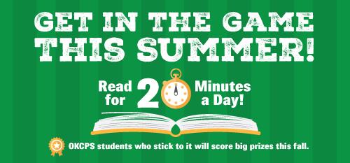 Oklahoma City Public School students grades K-6 can earn prizes for their summer reading! ReadOKC’s “Get in the Game” reading program encourages students to grab their favorite books and get reading! The goal is to read 20 minutes a day for a total of 1,200 minutes over the summer. Students that reach this lofty goal will be rewarded at a celebration assembly this fall at each OKCPS elementary school with award medals, gift cards for books and more prizes from SONIC and the OKC Dodgers.