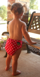 While I was making the switch to cloth diapers for my baby, my son was fully potty trained during the day, but still had trouble staying dry at night. For nearly a year, we had been purchasing disposable pull-ups (which are even more costly than disposable diapers). Believe it or not, it took this college graduate nearly 2 months to make the connection that there may be a way to save money by using cloth pull-ups as well. Just as when I discovered cloth diapers, I was amazed to find all of the different kinds of cloth training pants out there that don’t involve giant, poofy plastic pants. There are many styles that have a few extra layers of absorbency in the “wet zone” and a hidden layer of waterproof materials to protect against small accidents. These are comfortable and trim like underwear, but will help to keep the clothes dry from those “oops!” moments. This style, however, will not keep a child dry overnight or during naptime. I found that out the hard way.