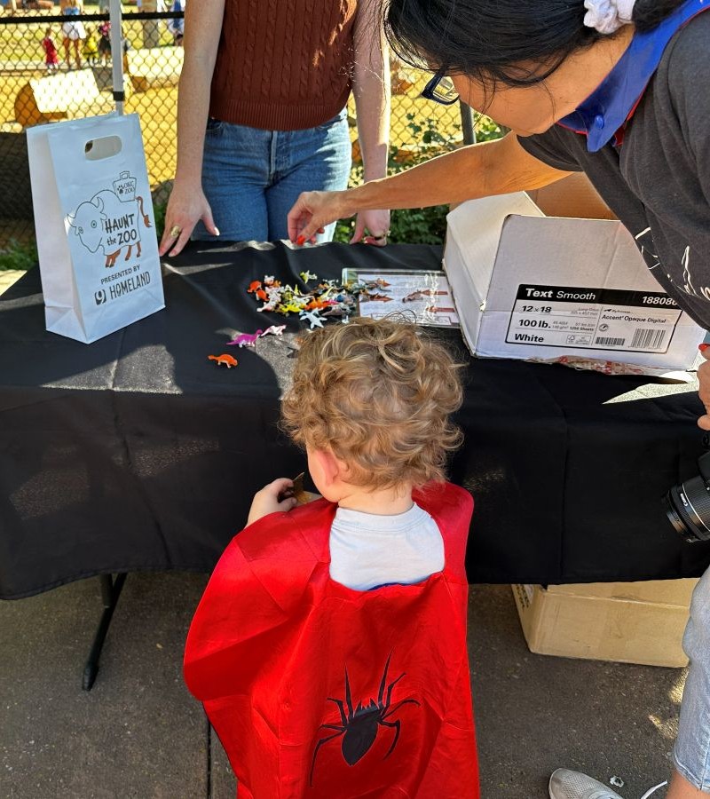 We went early in the morning this year, which turned out to be a great decision. The weather was mild, the crowds were easy to navigate and the animals were active. With 15 treat stations set up throughout the Children’s Zoo area, kids have plenty of opportunities to collect goodies while families enjoy being outdoors. Enthusiastic volunteers greet kids at each station, handing out candy and smiles in equal measure. It’s clear that Haunt the Zoo wouldn’t work without them. Their energy sets the tone, keeping things organized while making it feel personal and fun for each child walking through.