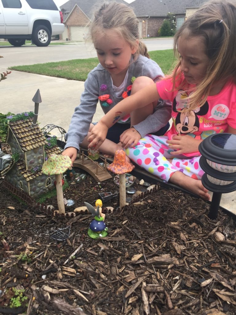 After a few hours of splashing around, we would head home for dinner with Dad. The best summer days always involve a BBQ grill. With Dad on the grill, my kids and our sweet puppy run around the back yard and wait for dinner to be completed. I would be inside getting our sweet beans and fixins all ready for the meal. As the burgers were placed on the table we would hold hands and thank God for a wonderful day and then pray for hurting family and friends. After dinner, the girls would talk me into their “most favorite” part of summer gardening and we would add some new touches to our fairy garden. The prefect summer day would close as it began…. chocolate milk and sippy cups.