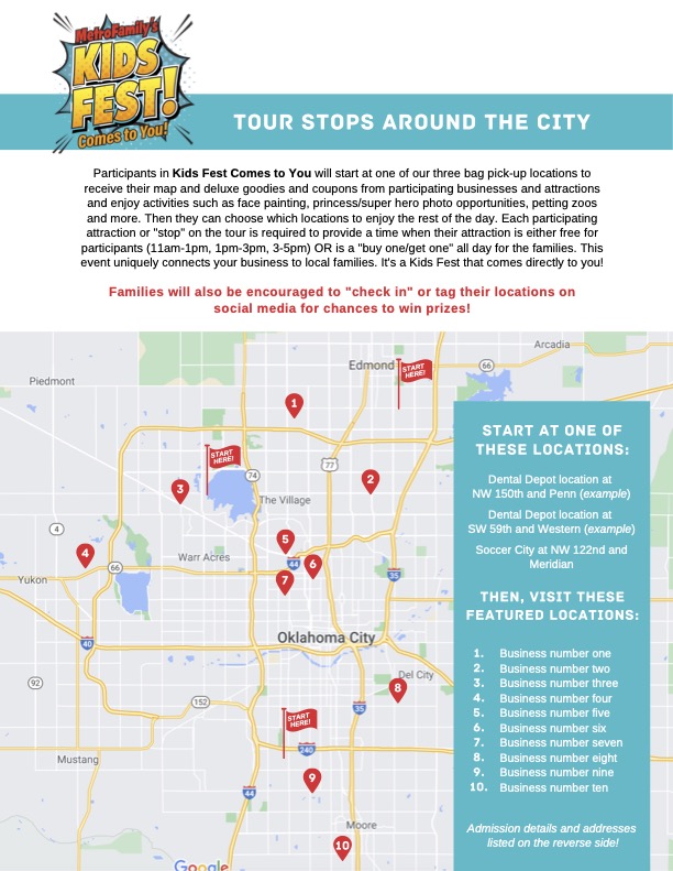 Please click here to find the Kids Fest: Comes to You Media Kit that outlines our sponsorship benefits from Presenting Sponsor to Nonprofit Sponsor beginning at $399.