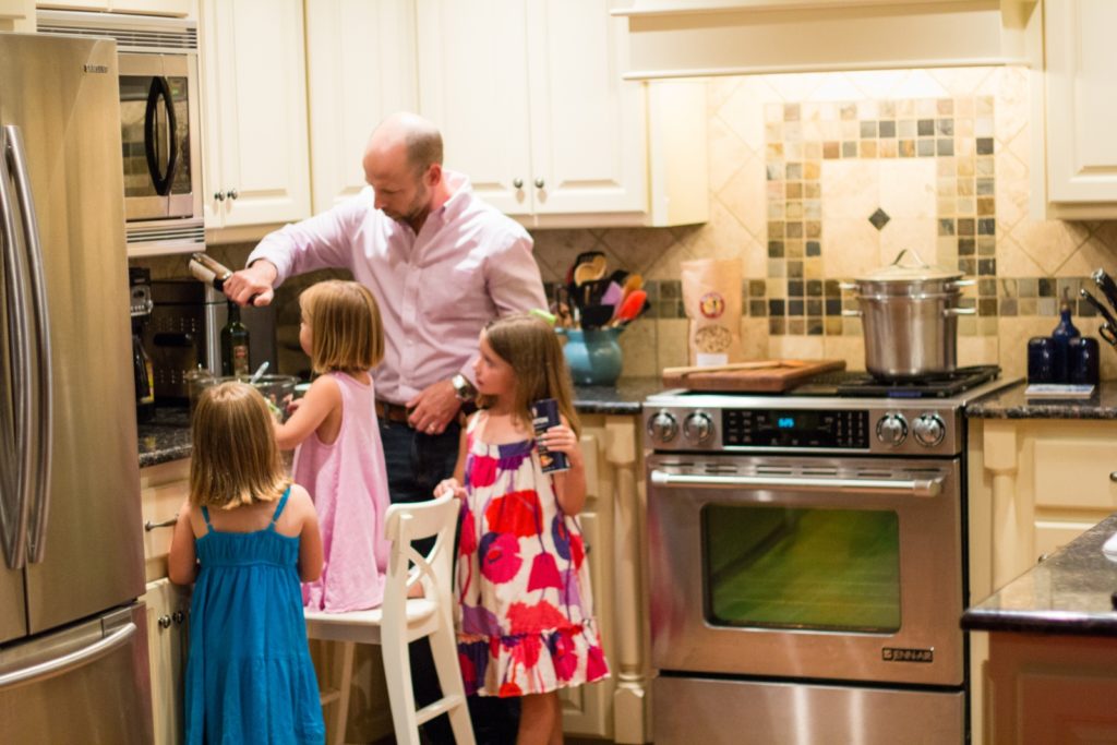 Full disclosure, my wife Jenny is much better at allowing them to have freedom in the kitchen and make messes and learn. It’s engrained in me to work clean and organized, so I struggle with that part with my daughters. Don’t be like I was in the beginning. Just let them have fun for a while before you start trying to teach your 3-year-old about “mise en place.” Do the simple things. Keep them safe with knives (yes, you need to let them learn how to use them), keep them away from hot areas, but let them experiment. One of the best foods to start with that is fun and safe is making some sort of dough, like pizza dough or bread.