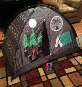 - Pop-up tent paired with a flashlight. Drew recommends checking Walmart for good deals.