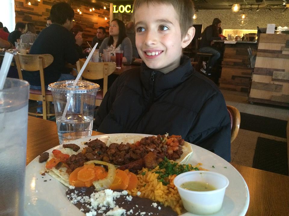 I almost always share a waffle with blackberries or the French toast with my brother, Isaac (age 4). We try a different fruit drink each time or horchata. My baby brother, Gabriel (age 1), surprised everyone at our table with how much he ate the last time we were there. That’s a lot to say, because he doesn’t always like to eat, but he ate so much of my Mom’s scrambled eggs with mushroom and tomato that she had to order something else for herself. I really think he ate more than I did.