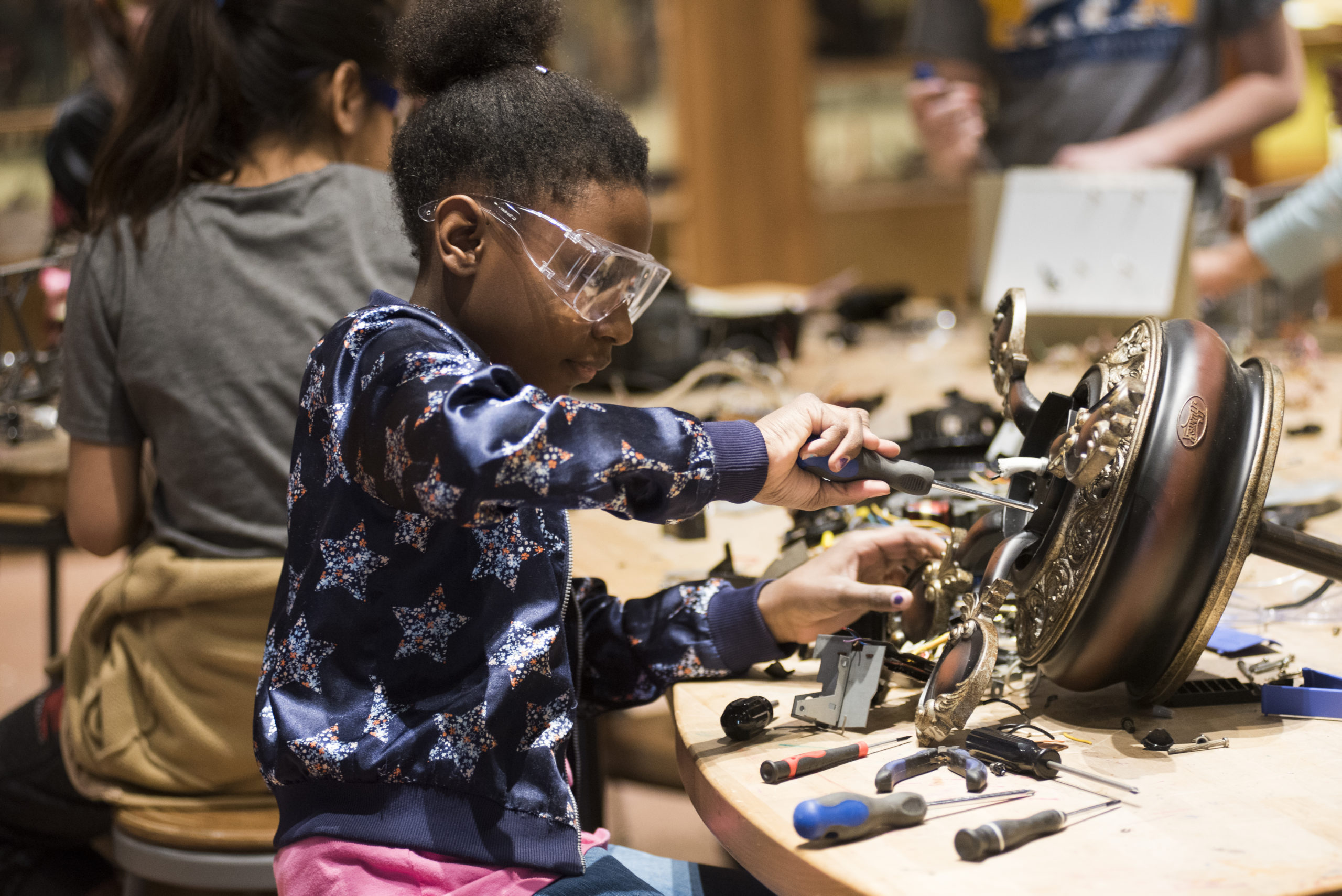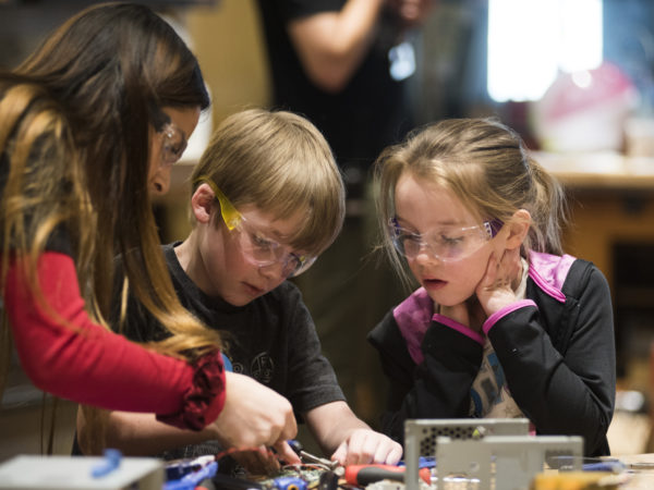 For families new to makerspaces or those looking to take the concept to the next level, Thompson, suggests checking out a book called The Art of Tinkering by Karen Wilkinson and Mike Petrich. The book encourages kids to take things apart and explore tools and materials all in an effort to create art that is part science, part technology.