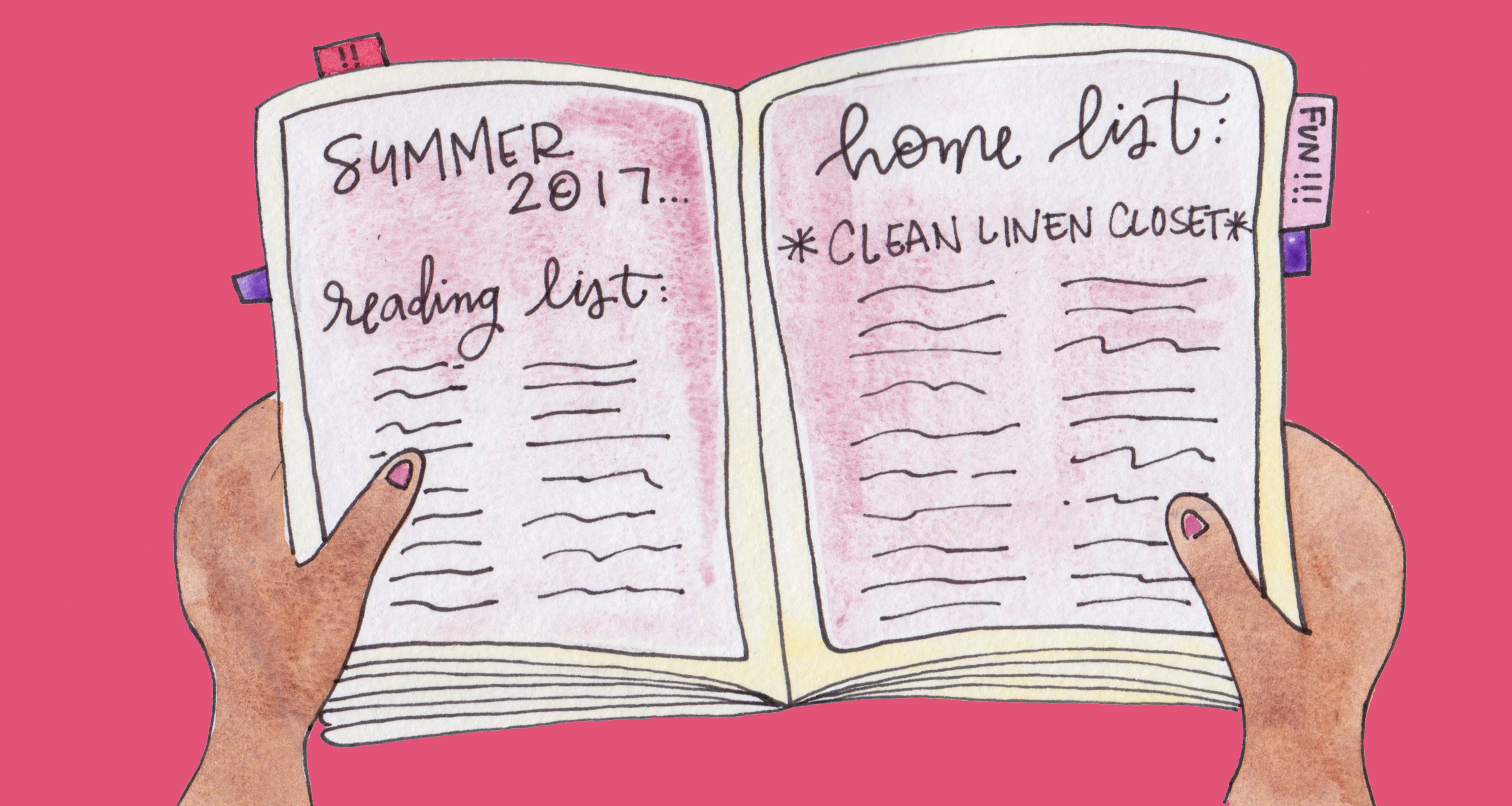 Next, I create my Home List. This is the summer the linen closet will get cleaned plum out, friends. Those of you who have followed my summer to-do list know that every year, cleaning out the linen closet gets its own special line, written in green for a fresh, clean space, in all caps because it’s just that important. And every year, the linen closet is neglected and my green-inked line never does get a check mark beside it or a black Sharpie line drawn through it. It’s a tough one, but I feel confident that this is the year it’ll happen. Or maybe it won’t. Shrug. I don’t know.
